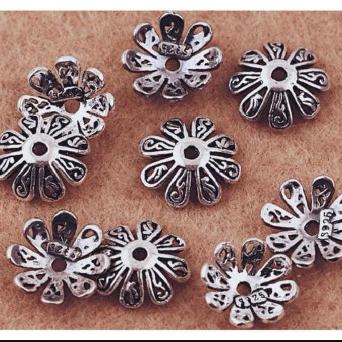 Phụ Kiện Thời Trang > Phụ kiện thêm > Mặt dây chuyền và Charm || Charm bạc chụp hạt hình hoa bạc thái 925