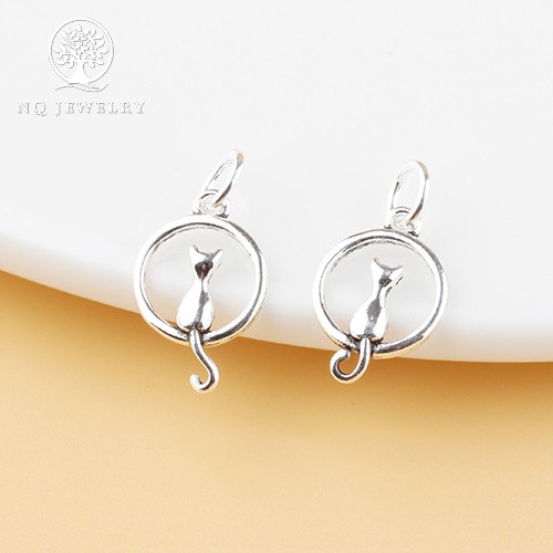 Charm bạc hình tròn chứa mèo con treo - NQ Jewelry