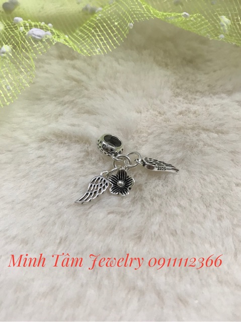 Giới thiệu Charm rơi trùm treo hoa và đôi cánh thiên thần bạc S925