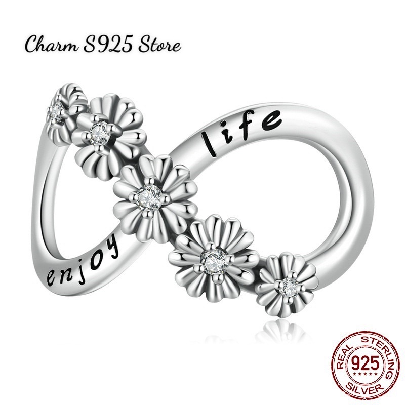 CHARM VÔ CỰC ĐÍNH HOA CÚC BẠC S925 CAO CẤP