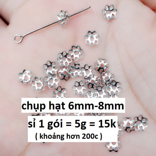 Giới thiệu Chụp hạt 6mm - 8mm : 1 gói = 5gram = 15k ( tầm khoảng hơn 200c )