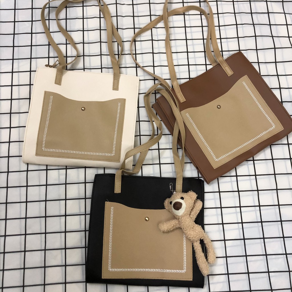 Túi Xách Nữ Phong Cách Hàn Quốc, Form Rộng,3 Màu Xinh Xắn, Chất Liệu Da, Kèm Gấu Bông