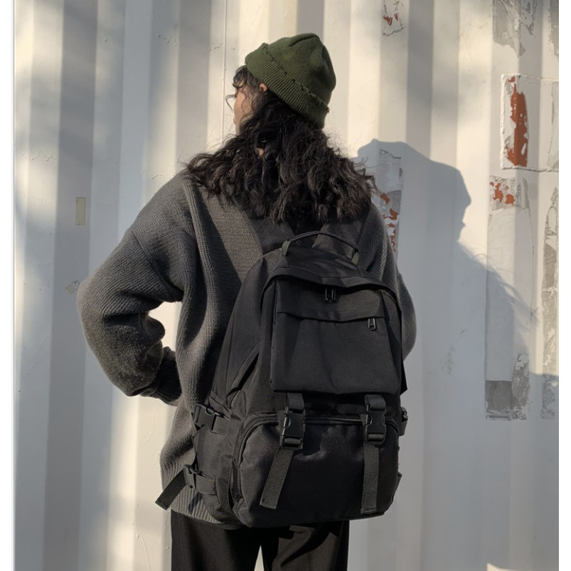 Túi Ví Nữ > Ba lô || [CÓ SẴN FREESHIP TỪ 50K] Ba lô Unisex Màu Đen Trơn ulzzang balo