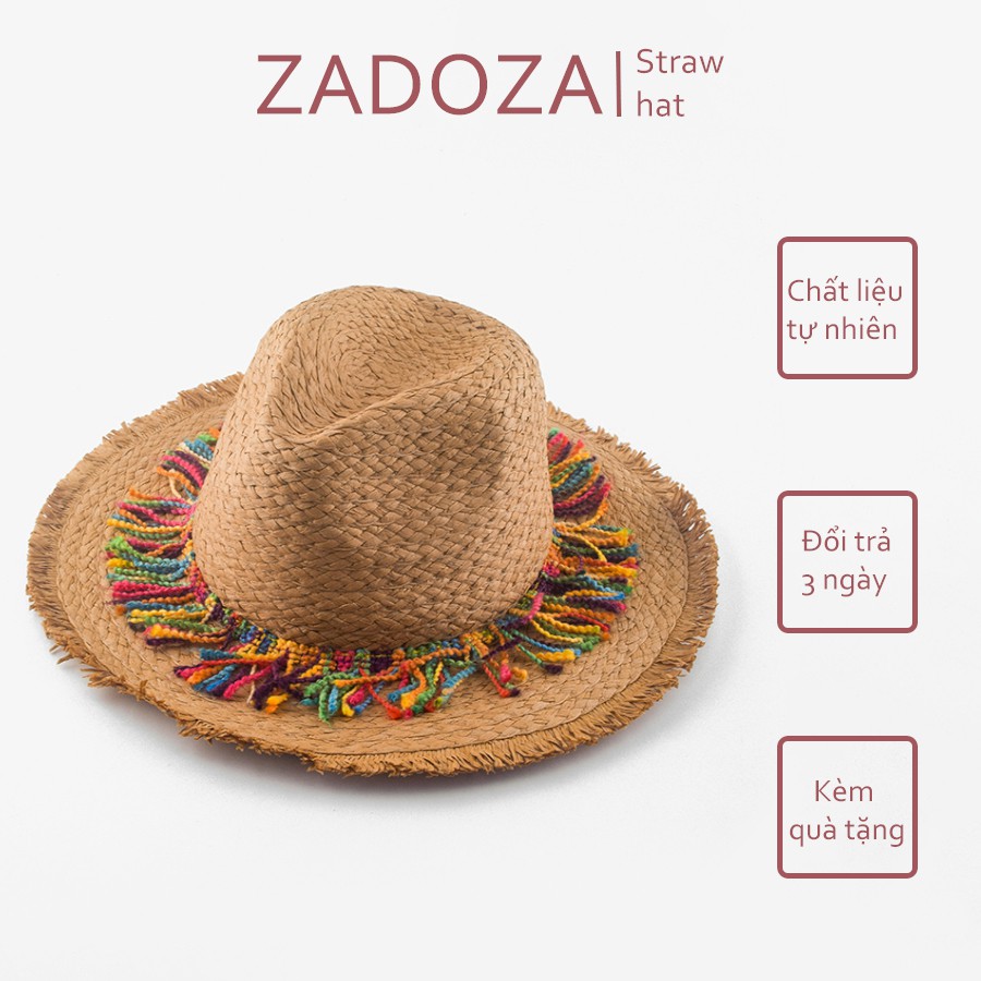 [CÓ SẴN- HÀNG CAO CẤP] - Mũ cói panama đi biển vintage tua rua nhiều màu (mũ phớt)