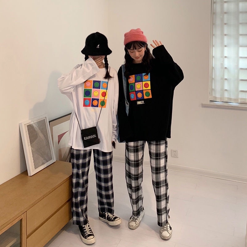 Thời Trang Nữ > Quần > Quần dài || [CÓ SẴN] Quần ngủ pijama kẻ caro đen trắng quần dài dáng suông đồ mặc nhà Hàn Quốc ullzang