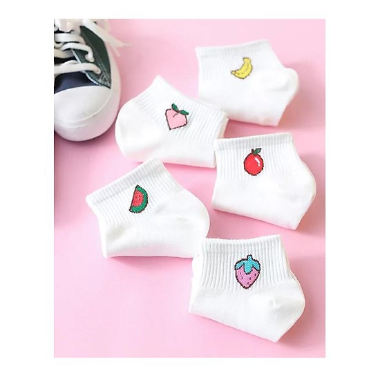 Giới thiệu Combo 10 đôi tất nữ xuất nhật trắng trơn, tất hoa quả siêu đáng yêu