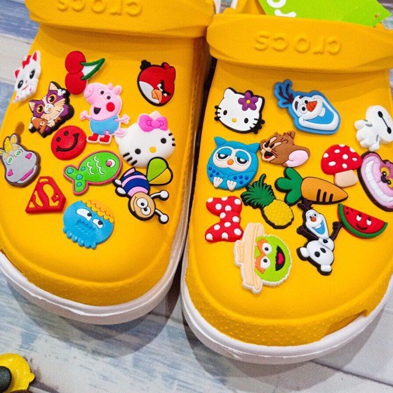 Các pé là Jibbitz nút để gắn trang trí dép sục cá sấu / dép có lỗ ạ