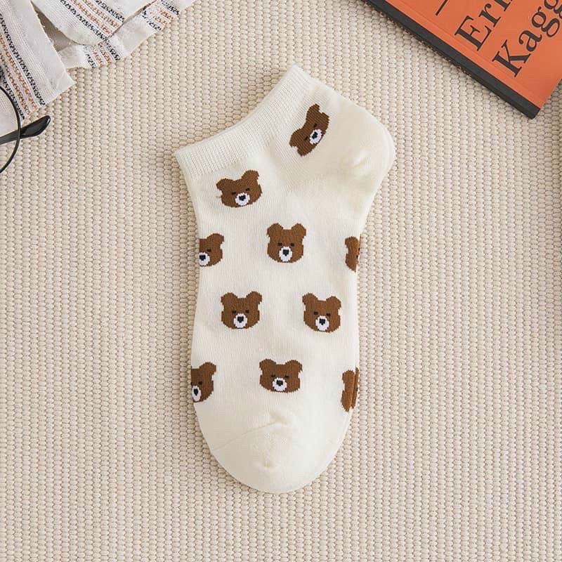 Giới thiệu Combo 5 đôi tất gấu cổ ngắn họa tiết Gấu Brown đáng yêu kèm túi đựng