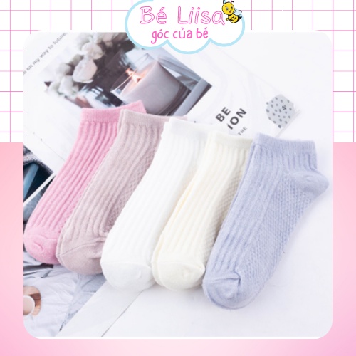 Combo 5 đôi tất nữ cổ ngắn - vớ nữ cổ thấp cotton màu trơn phối ren mỏng thoáng