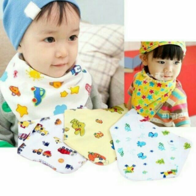 Khăn tam giác in hình được làm từ chất liệu vải cotton mềm mịn và êm ái với làn da của bé yêu