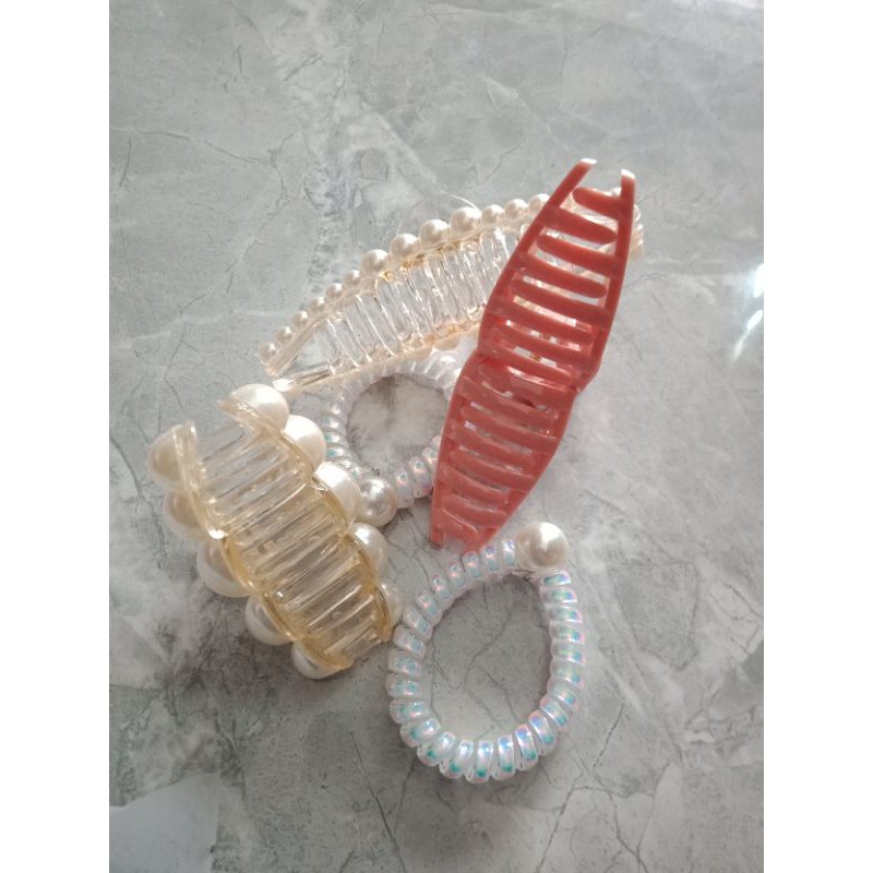 Giới thiệu Combo 5 Món Chun Buộc Kẹp Tóc Nhựa Trong Cao Cấp, kẹp tóc ngọc trai