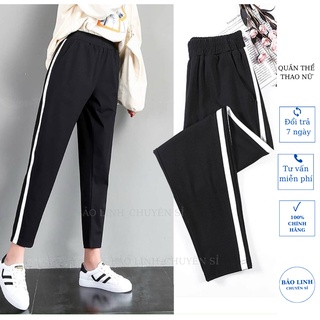Quần thể thao nữ dáng baggy viền sọc trắng, quần jogger dây rút cạp chun màu đen tập gym đi học đi làm