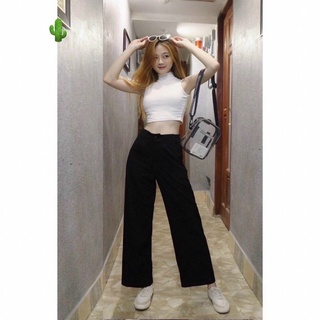 Quần ống rộng lưng cao khoá kéo