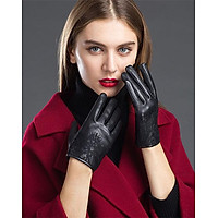 Găng tay nữ BHY8792 Bao tay nữ, da cừu thật, đơn giản, lót lông, tích hợp cảm ứng, ấm áp