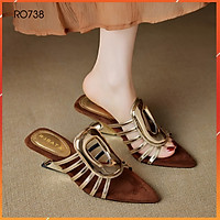 Dép guốc nữ đế xuồng 5 phân hàng hiệu ROSATA hai màu bạc nâu thời trang cao cấp ro738