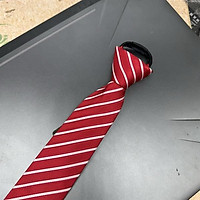 Cà vạt nam mẫu thắt sẵn dây kéo bản nhỏ 6cm mẫu đỏ kẻ trắng mưa