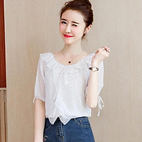Áo sơ mi nữ chấm bi cổ V thắt nơ Kiểu dáng