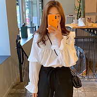 Áo babydoll tiểu thư ulzzang - Áo sơ mi kiểu bèo vai cánh tiên tay phối bèo xinh xắn
