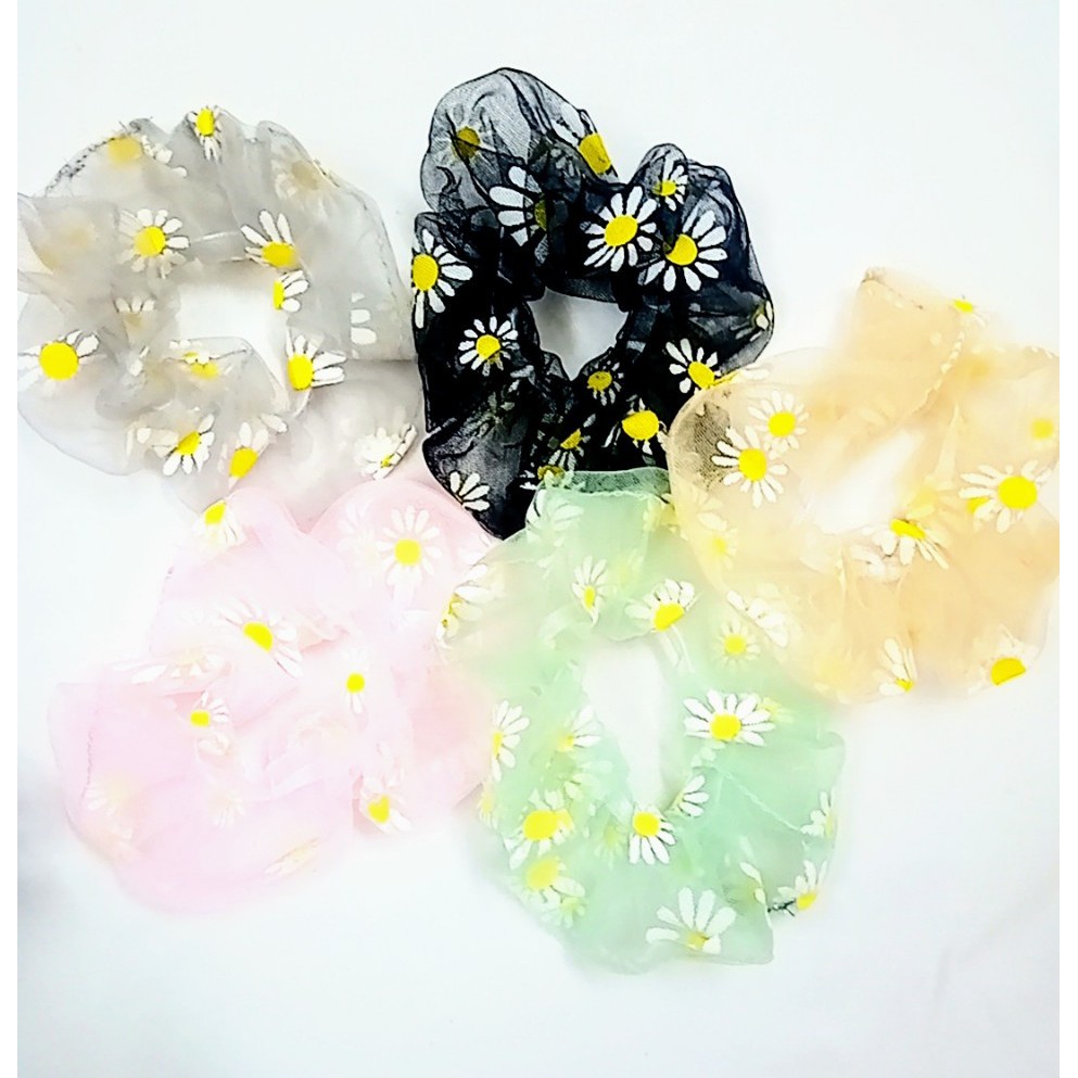 CỘT TÓC SCRUNCHIES VẢI HOA CÚC LƯỚI THỜI TRANG