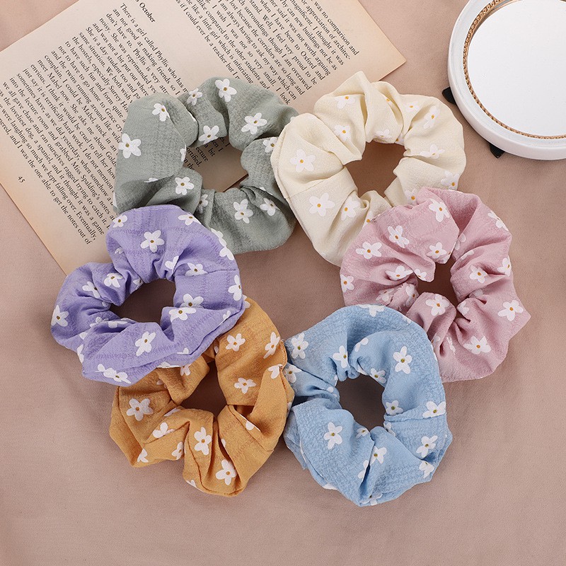Cột Tóc Scrunchies Vải Linen Họa Tiết Hoa 5 Cánh Thời Trang - Vani Store