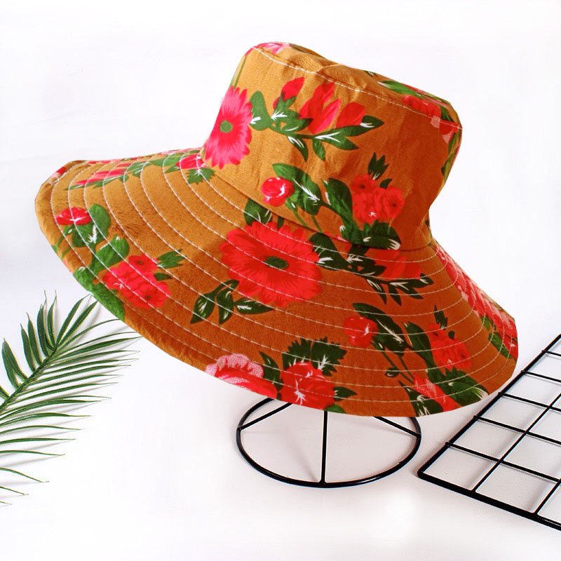 Nón Vải Vành Rộng Phối Bèo Họa Tiết Hoa (N020)