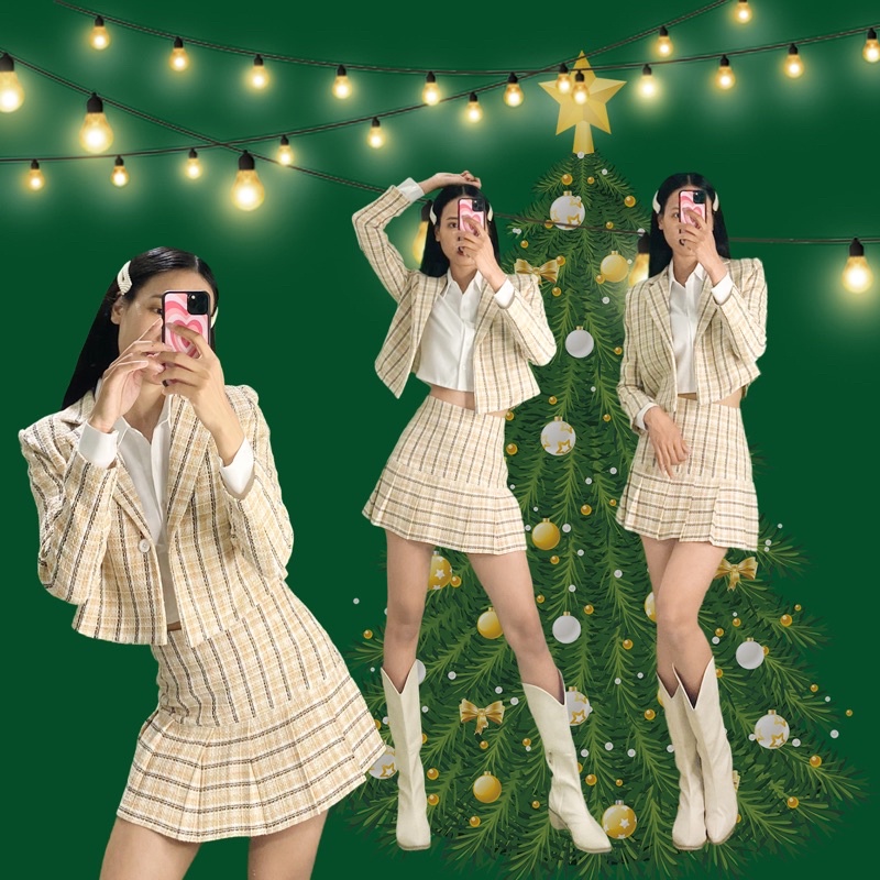 + Set áo vest blazer nữ croptop tay dài sọc vàng Dalla Saigon