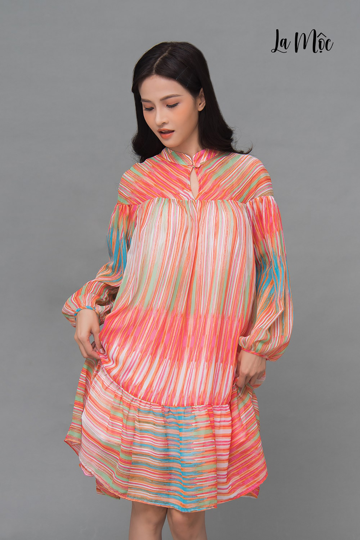 Đặc điểm: Cổ trụ, nhún đô, nhún béo ở từng đầm, tay dài phồng ở cửa tay.