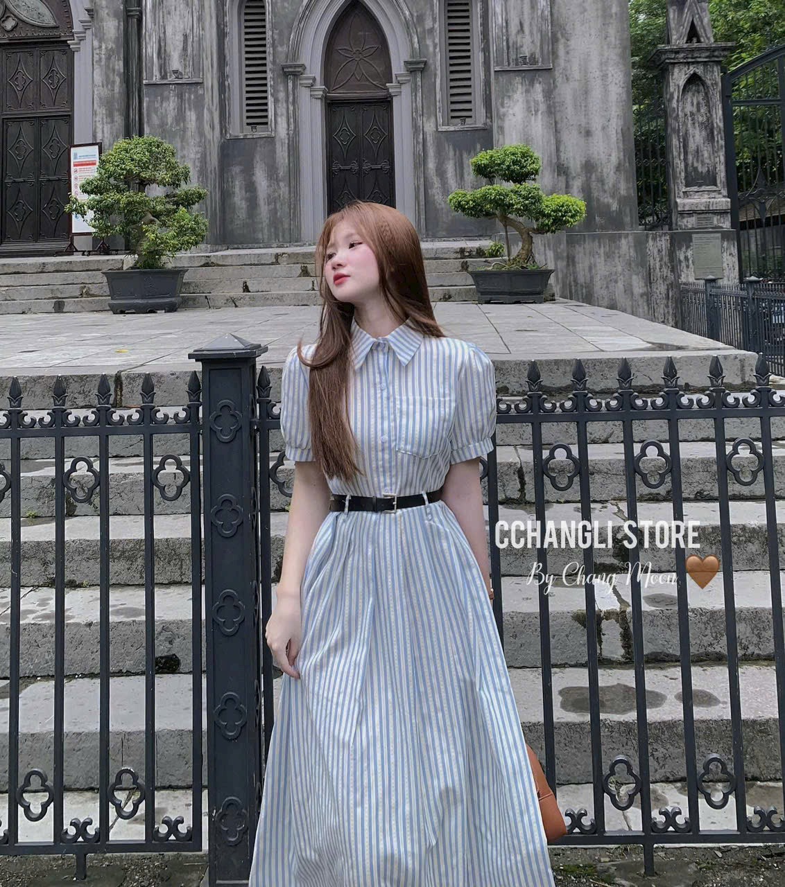 ĐẦM CỔ SƠ MI KATE LỤA FROM DÀI KÈM NỊT