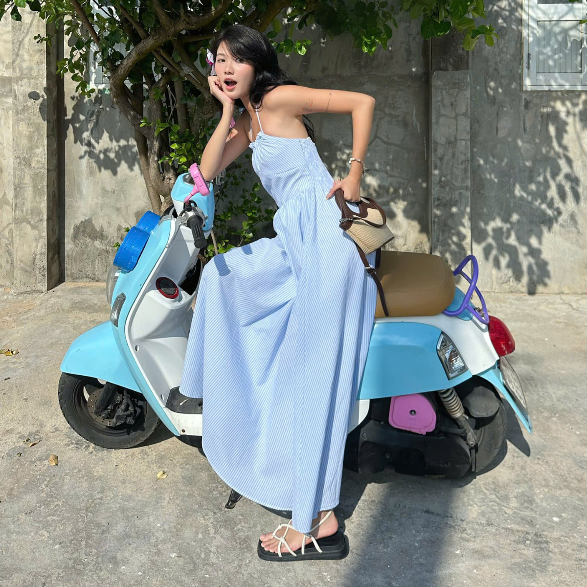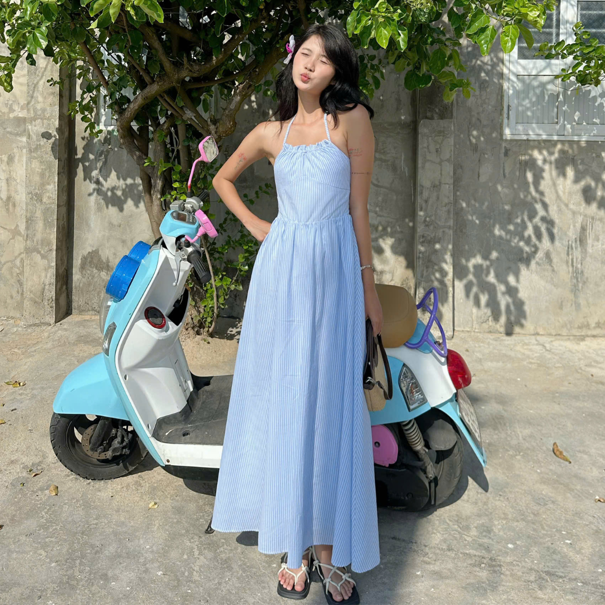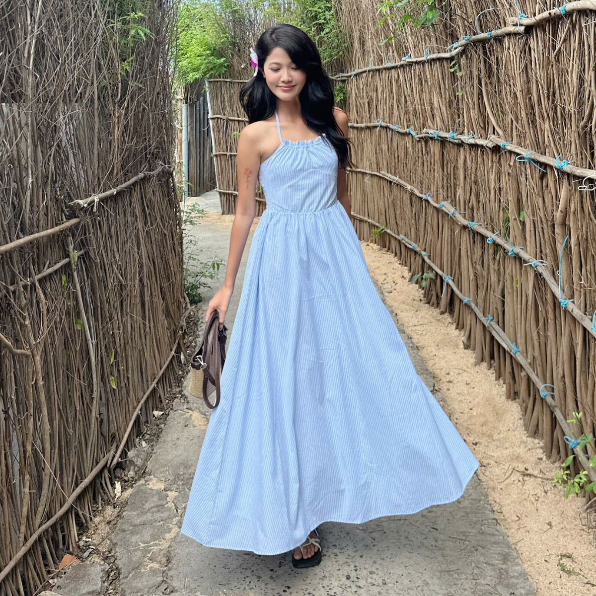 - Sản phẩm : Đầm dài đầm dài maxi họa tiết sọc thích hợp đi biển dạo phố Aurora Miều Est.2013