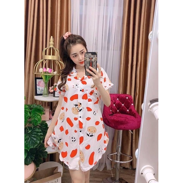 Thời Trang Nữ > Đồ ngủ > Váy ngủ || Đầm ngủ bò sữa viền bèo