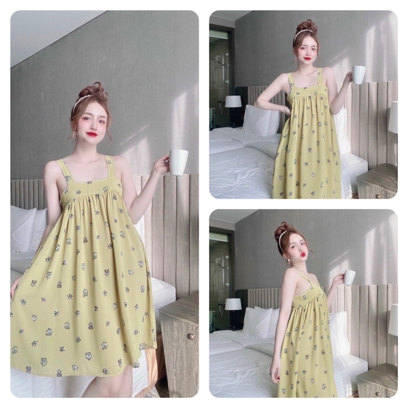 Giới thiệu Đầm Ngủ Nữ, Đầm Ngủ Sexy 2 Dây Nữ, Lụa Mango + quần, Freesize 40_65kg, tuỳ chiều cao