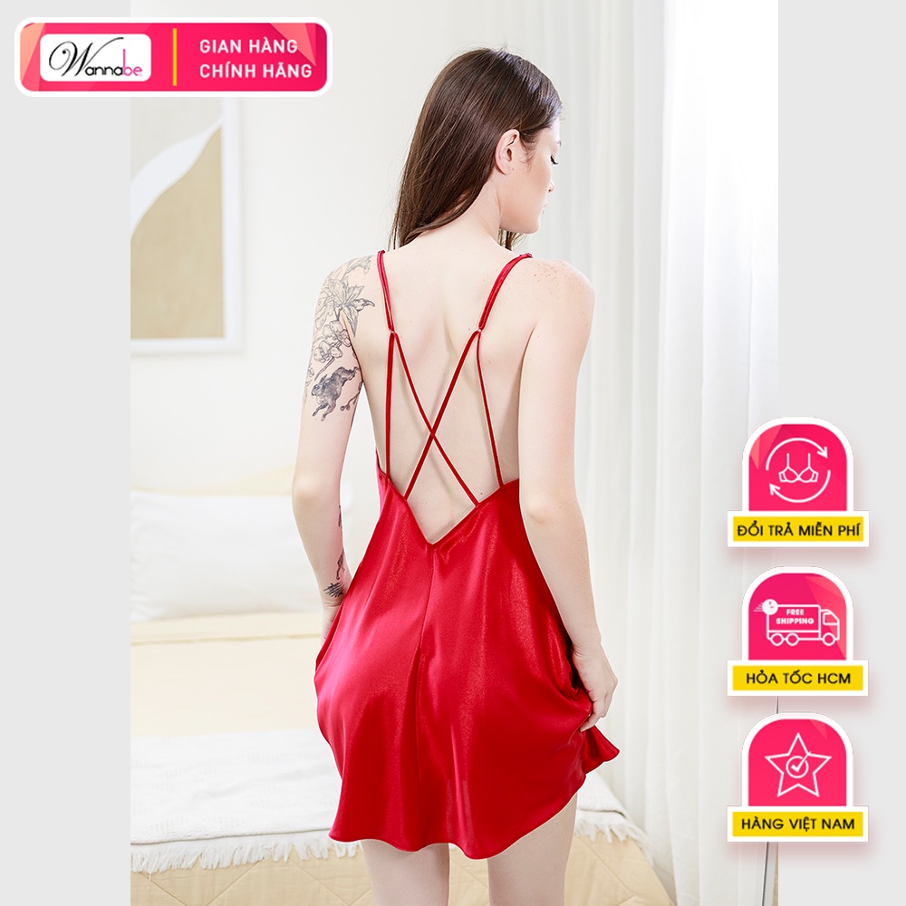 Đầm ngủ phi lụa cao cấp Wannabe DNS50 kiểu đầm hai dây cut-out lưng quyến rũ gợi cảm