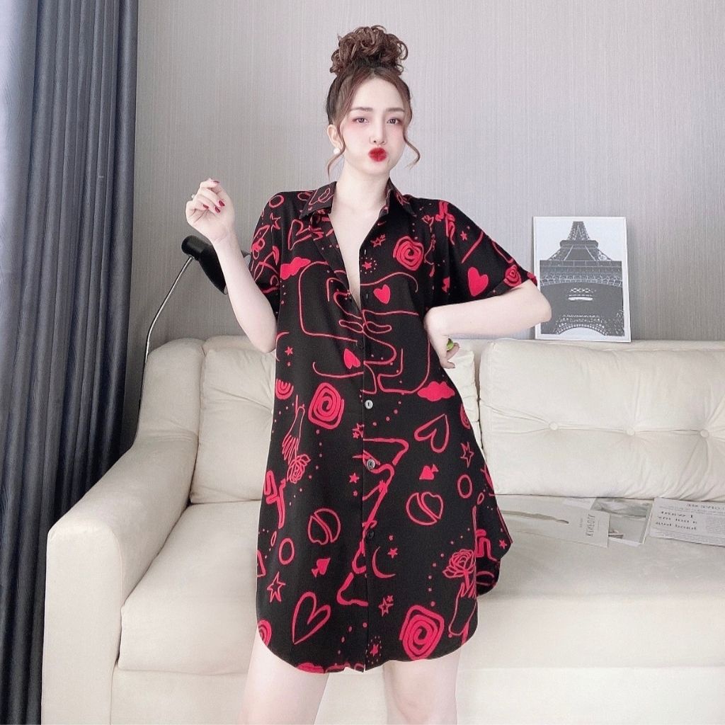 - Phong cách: đầm ngủ sơ mi bigsize, váy ngủ sơ mi lua, đồ ngủ nữ, đầm ngủ oversize.
