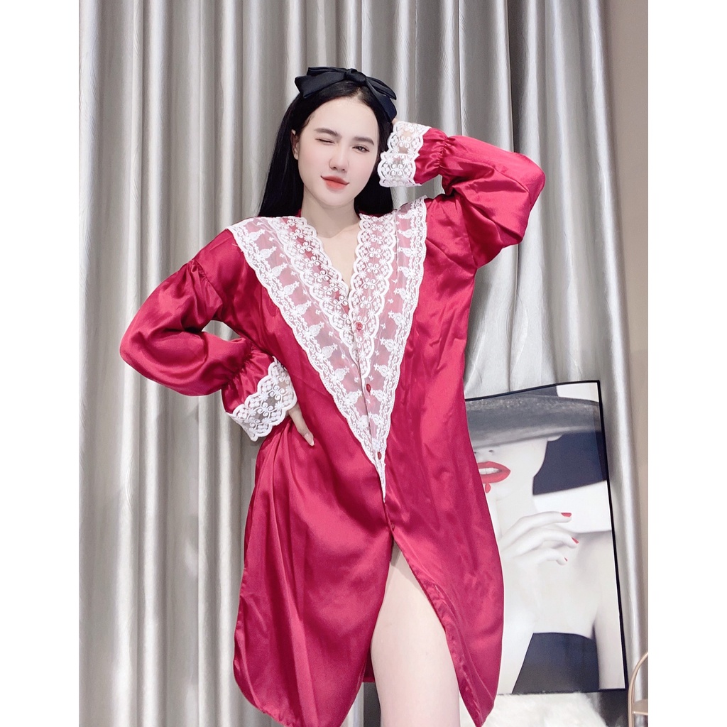Đầm ngủ sơ mi bigsize váy ngủ lụa phối ren quyến rũ