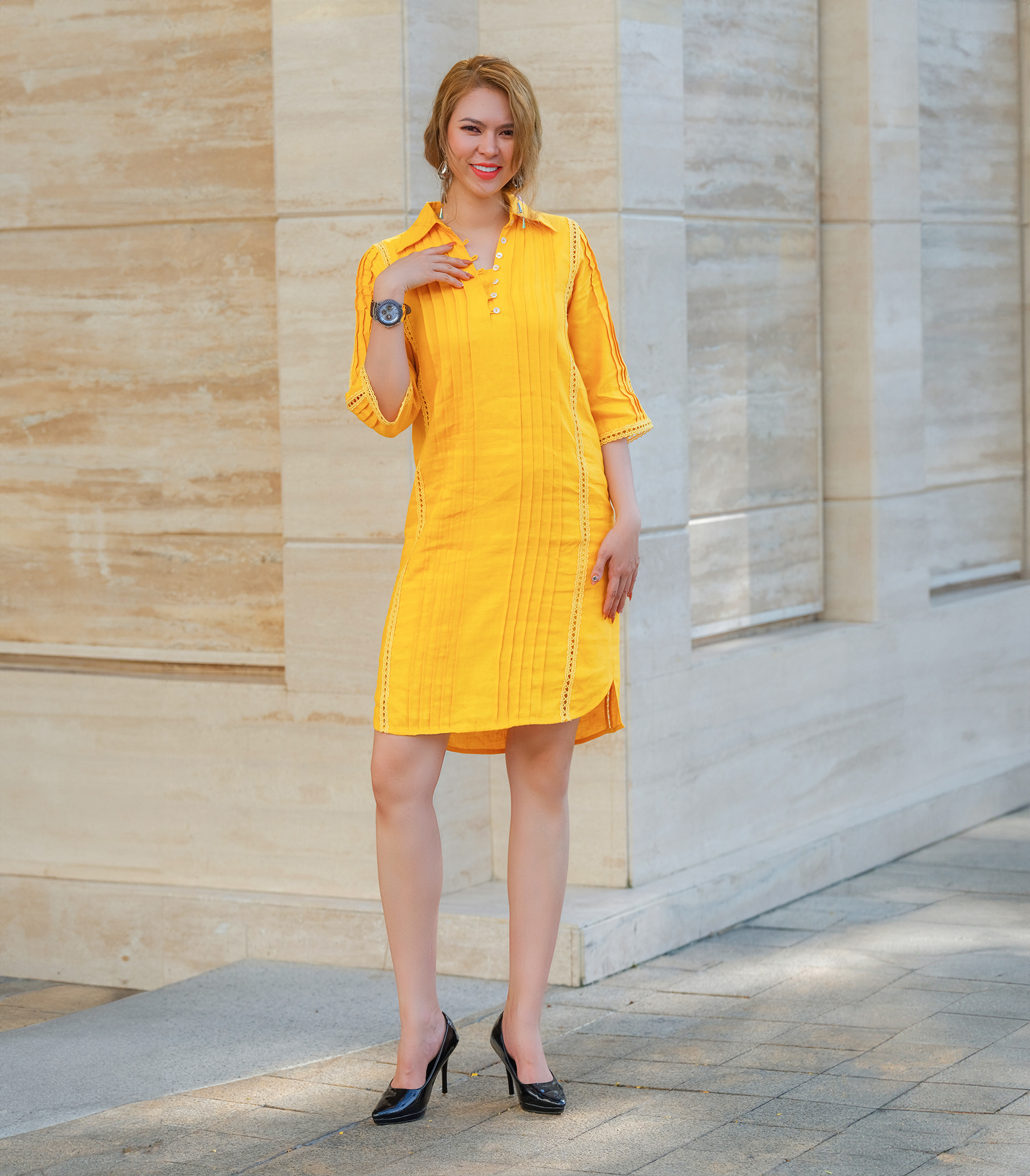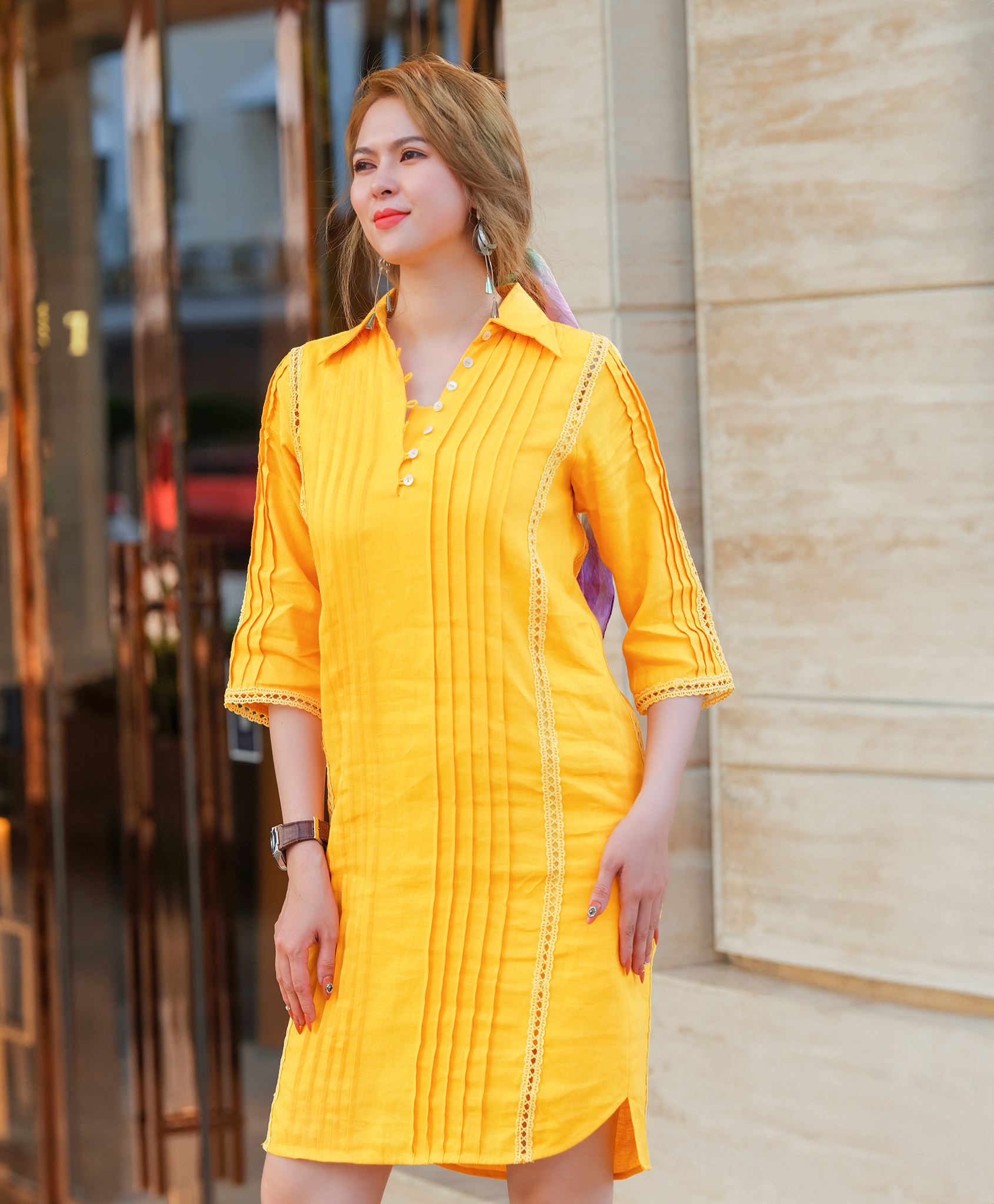 Đầm Sơ Mi Linen Tràng An DRE135 thời trang thiết kế Hity