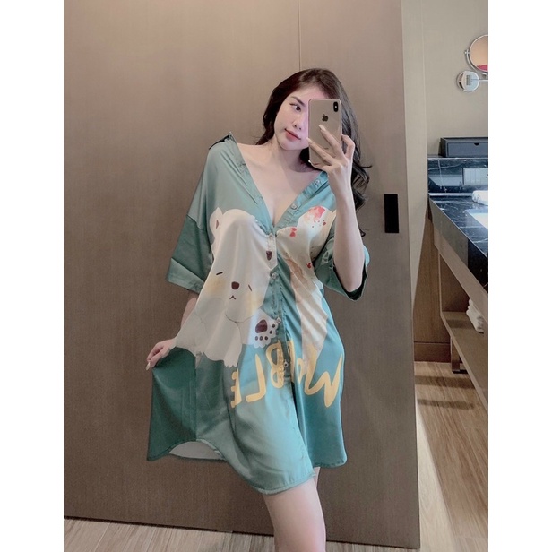 Thời Trang Nữ > Đồ ngủ > Váy ngủ || Đầm Váy Latin Satin Ngủ Sơ Mi Hình Dễ Thương