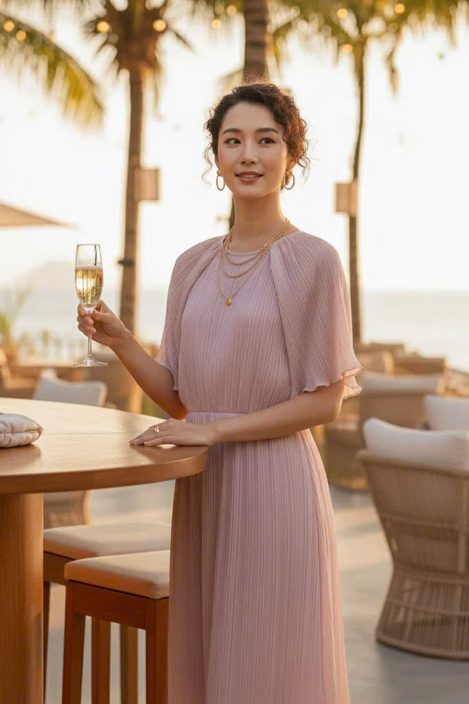 Chỉ cần chiếc đầm này, với những nếp ly khẽ lay trong gió, ta đủ khiến không khí xung quanh mềm mại lả lướt hơn.