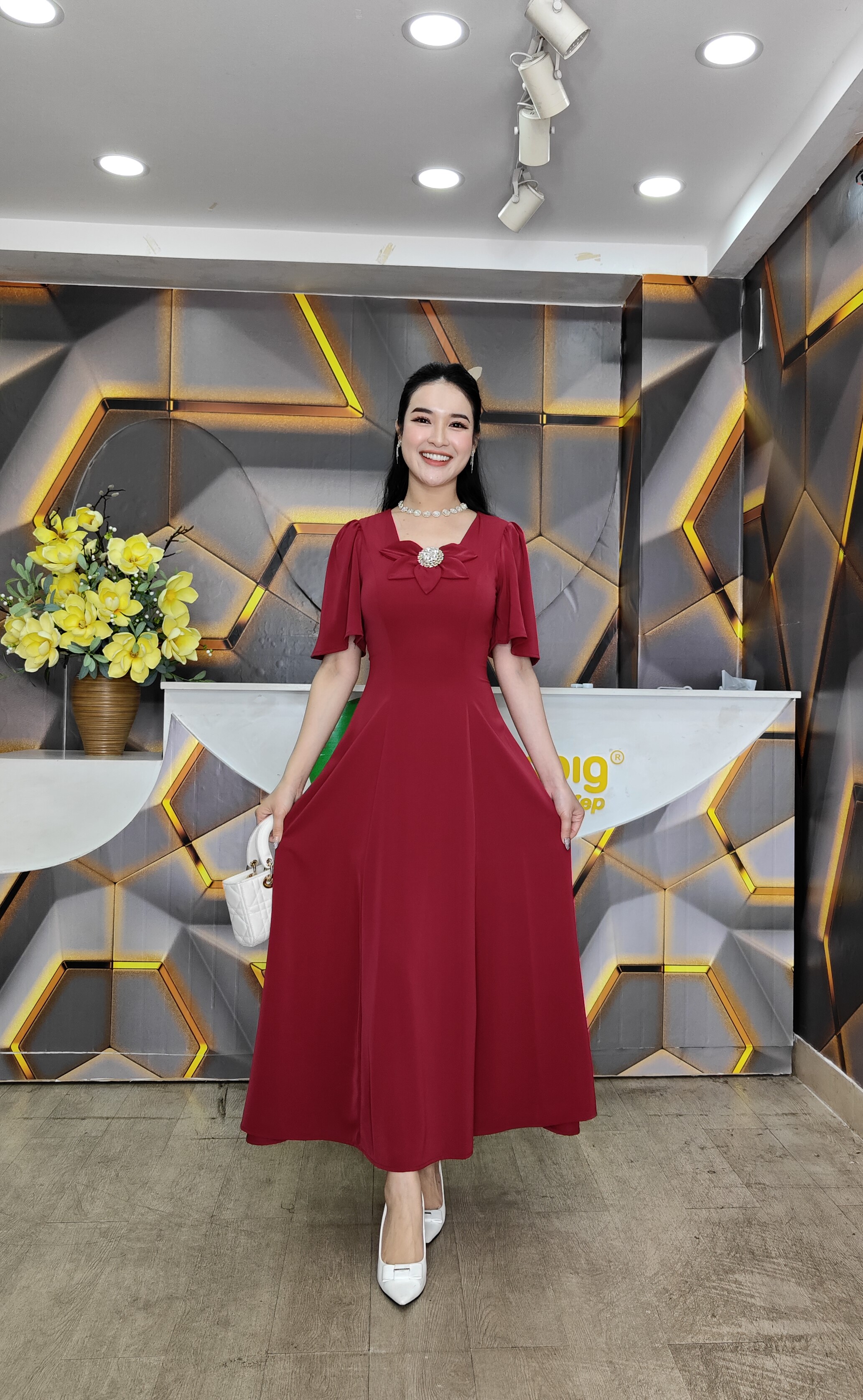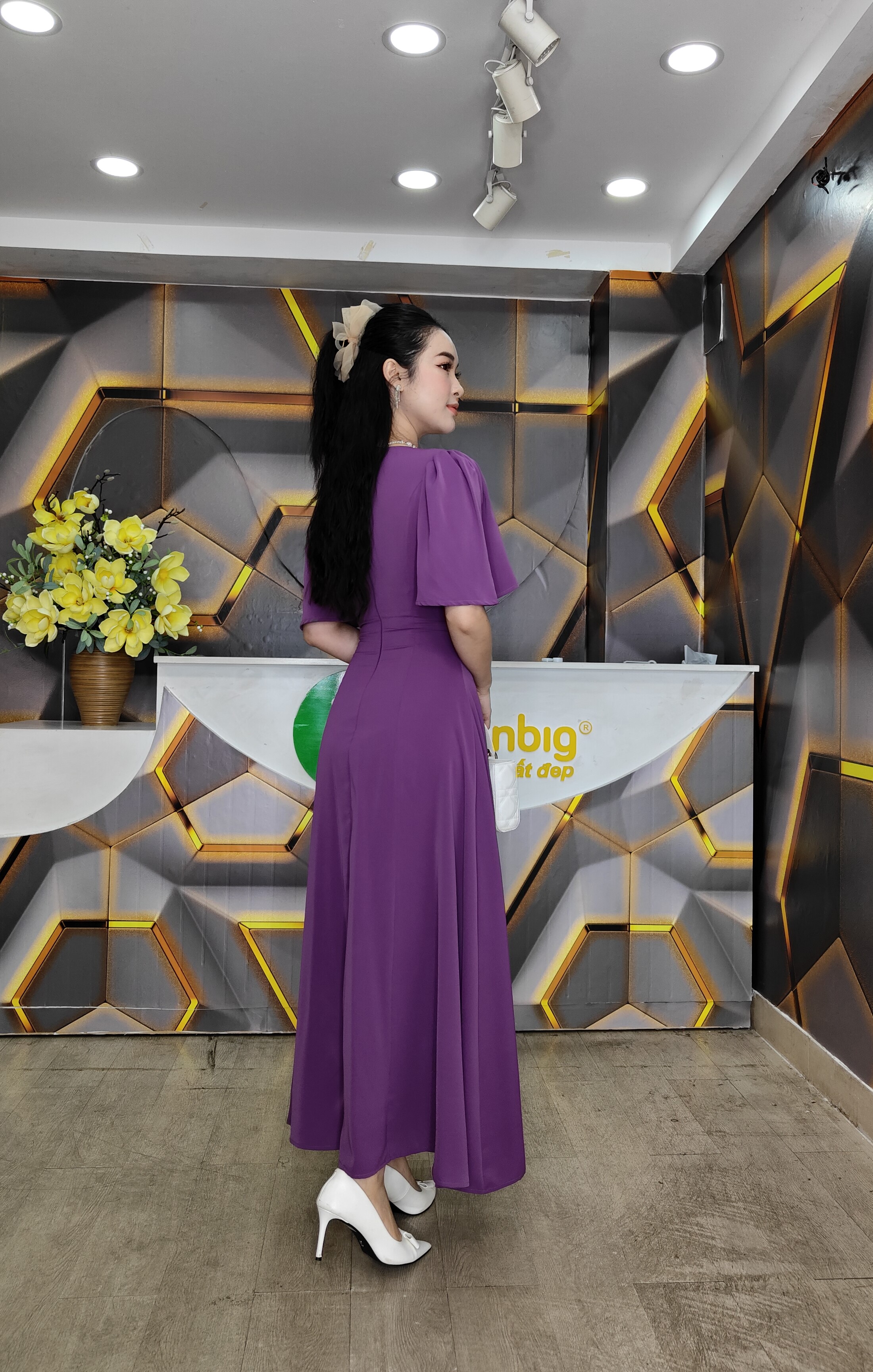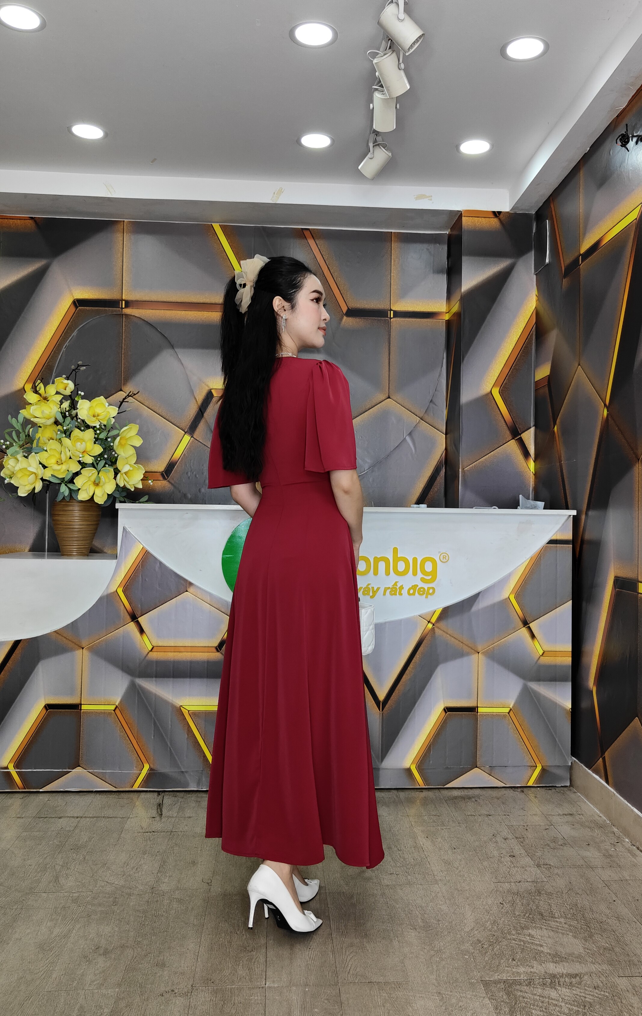Kiểu dáng: form dáng đầm 8 mảnh ghép lại, ko rã eo mặc rất đẹp, 2 lớp dây kéo phía sau