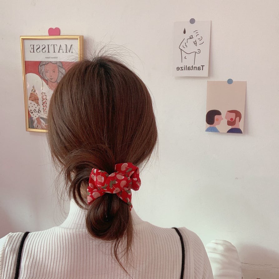 Giới thiệu Dây buộc tóc vải scrunchies vải voan họa tiết trái táo