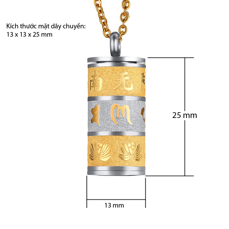 Đặc biệt: mặt dây chuyền thiết kế rỗng bên trong kèm nắp vặn nên có thể đựng 1 số vật nhỏ mang ý nghĩa như bài chú, hạt bình an...