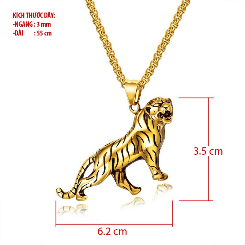 Màu sắc sản phẩm: dây và mặt dây mô hình hổ gầm được mạ 18k sang trọng.