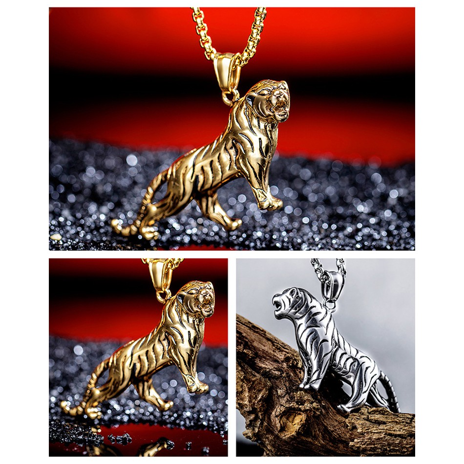 Phụ Kiện Thời Trang > Phụ kiện thêm > Mặt dây chuyền và Charm || Dây chuyền nam 3D hổ gầm bằng titan mạ 18k - T70 (Vàng)