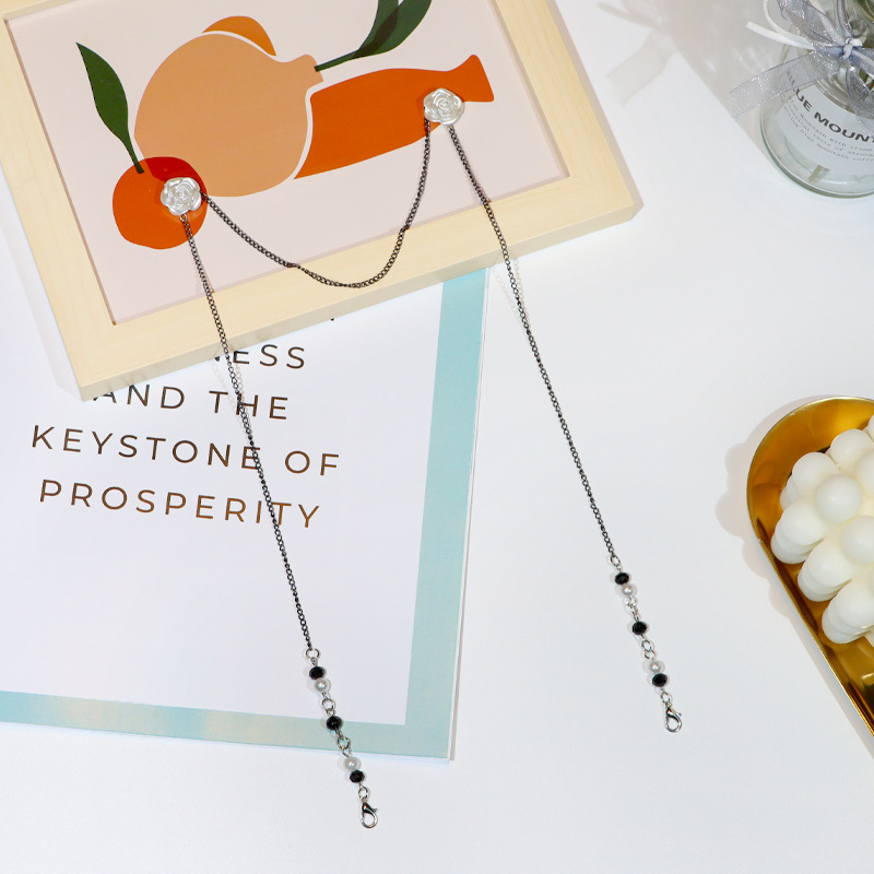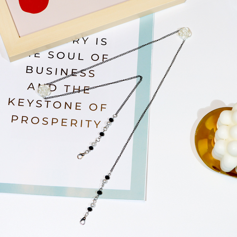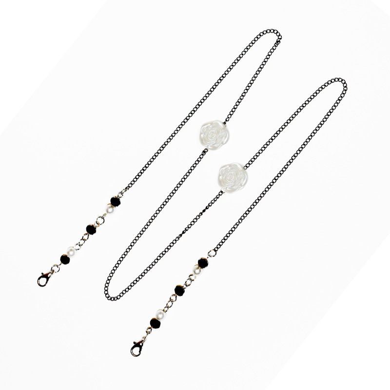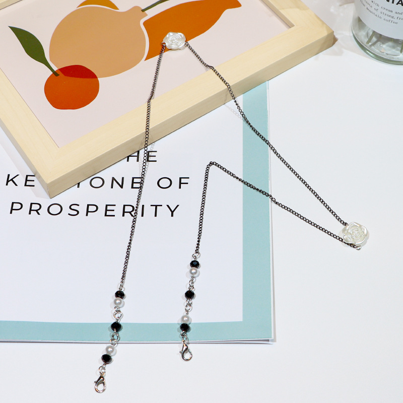 Dây đeo kính phụ kiện kính dây đeo khẩu trang charm hoa hồng mix hạt ngọc trai dây đen phụ kiện hot trend