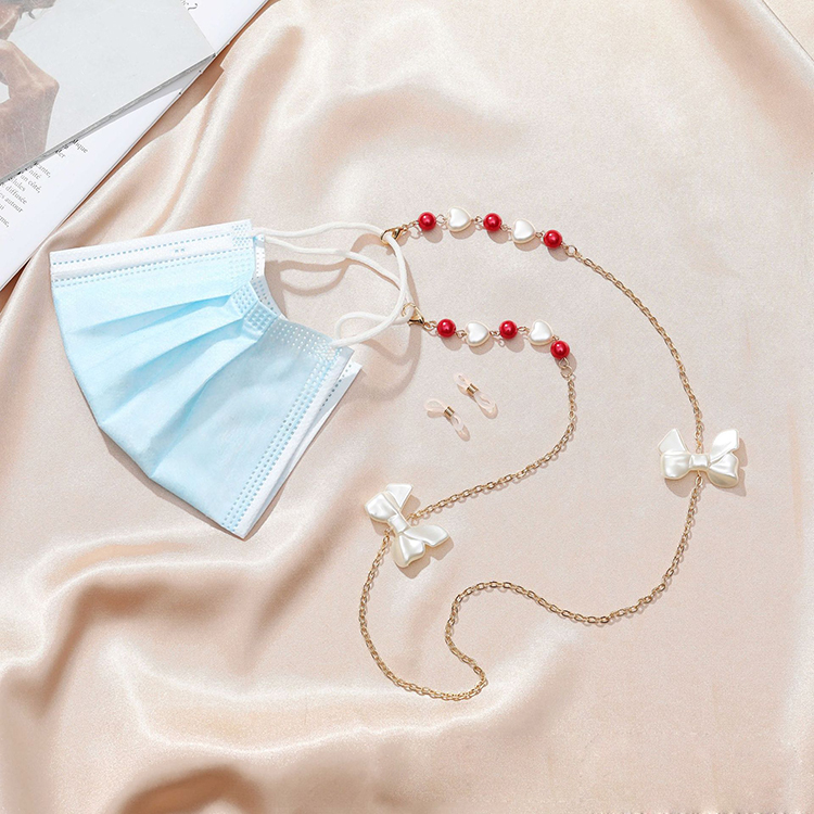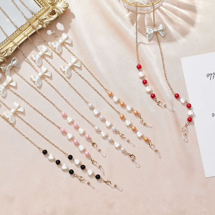 Dây kính chuỗi dây chuyền đeo gọng kiếng đeo khẩu trang mix nơ và trái tim phong cách thời trang nổi bật hot girl