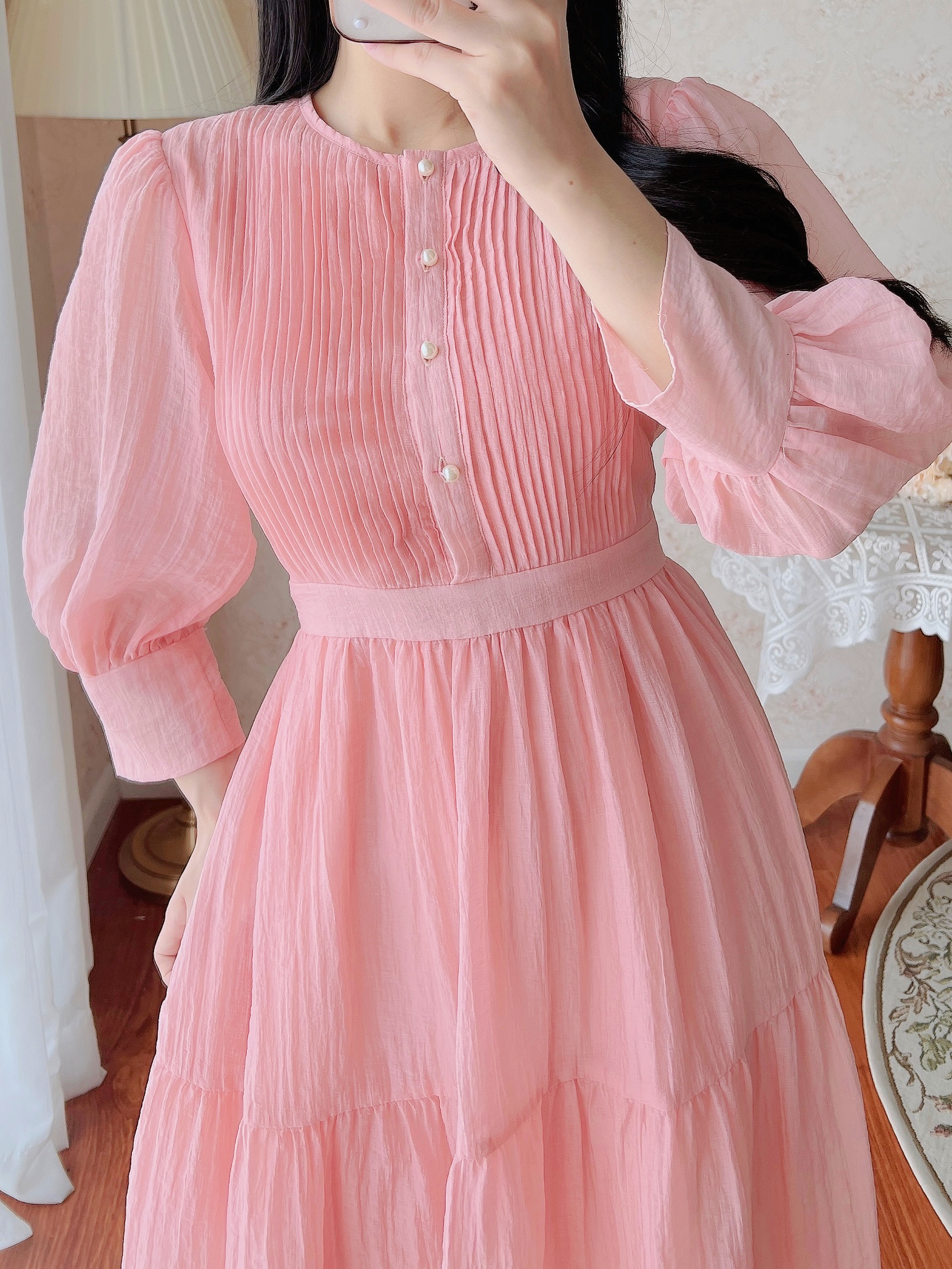 "Đầm xoè với phần ngực phối xếp li vô cùng khéo léo, tinh tế làm nổi bật chiếc đầm.