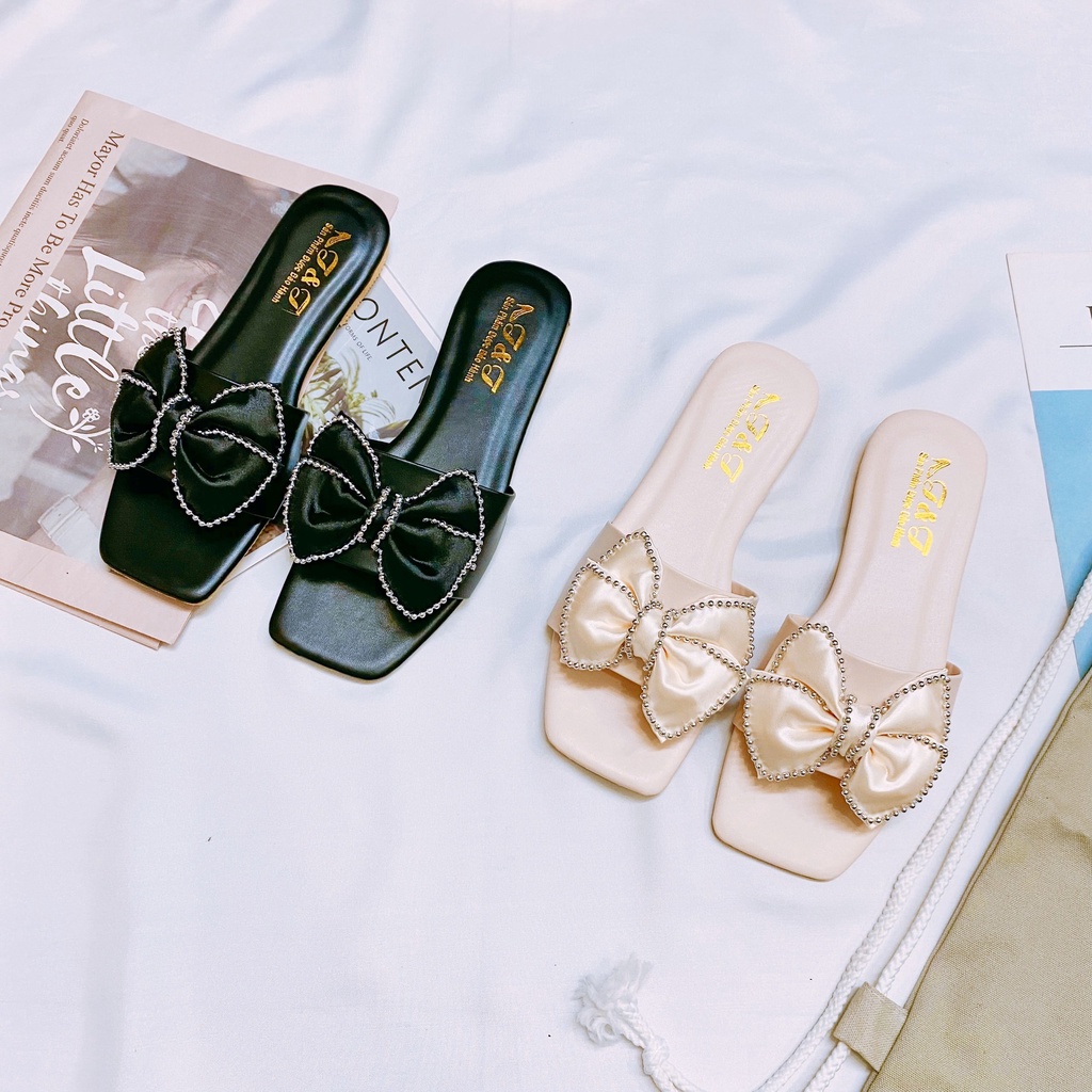 🔅 Dép quai ngang thời trang phối nơ viền đá sành điệu rất hợp để phối cùng các trang phục dù là mùa hè, mùa thu hay mùa đông se lạnh đi chăng nữa