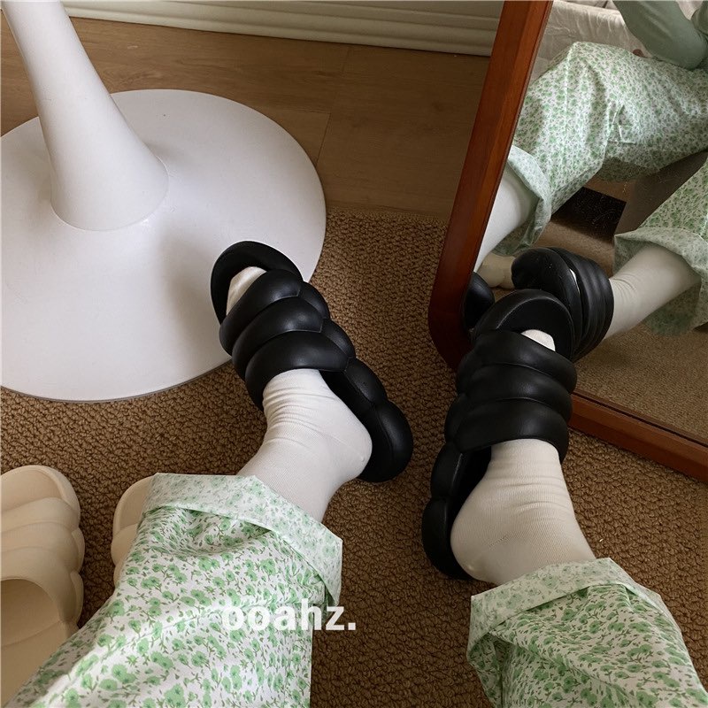 Giày Dép Nữ > Xăng-đan và dép > Dép đi trong nhà || Dép Bánh Mì Hình Con Sâu Siêu Êm Màu Đen Và Trắng