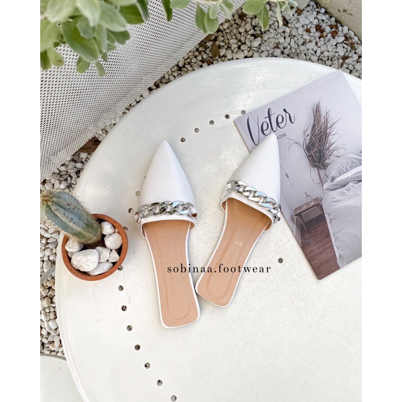 Giày Dép Nữ > Giày đế bằng > Giày sục & Giày búp bê || Dép bít mũi phối dây khoá siêu xinh