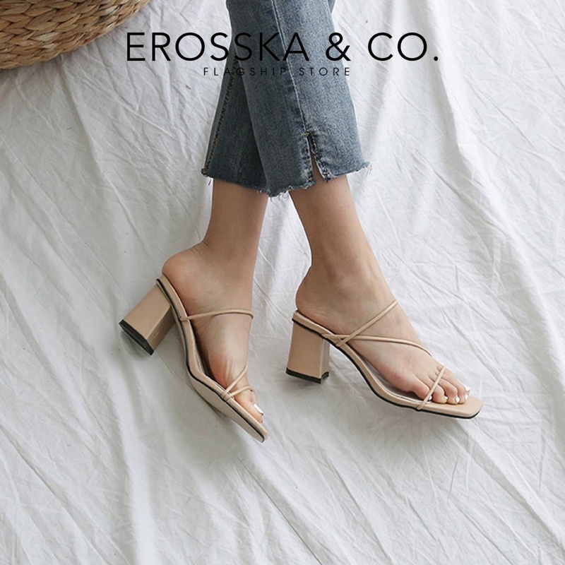 Giới thiệu Dép cao gót Erosska mũi vuông phối dây Hàn Quốc cao 7cm màu nude