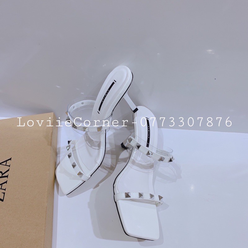 LOVIIECORNER- DÉP NỮ CAO GÓT THỜI TRANG HAI QUAI ĐINH ĐẾ NHỌN 7 CM MŨI VUÔNG